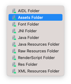 - 안드로이드 프로젝트에서 Assets 폴더 생성 : File - new -Folder - Assets folder