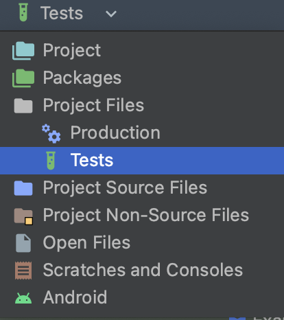 2. 보는 기준을 Tests로 설정한 다음 src/test/java에 테스트 클래스 추가