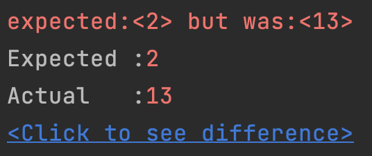 - assertsEqual 로 비교한 값이 run에 나오고 click to see difference 클릭 시 기대값과 뭐가 다른 지 알려준다.