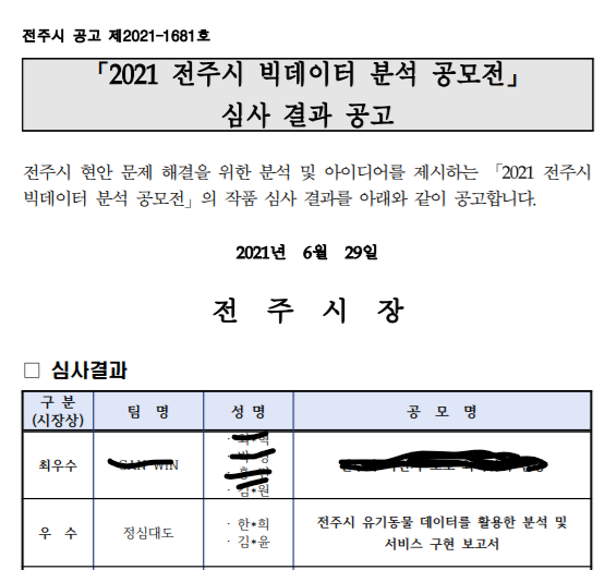 [공모전] 2021 전주시 빅데이터 분석 공모전 우수상 수상 본문